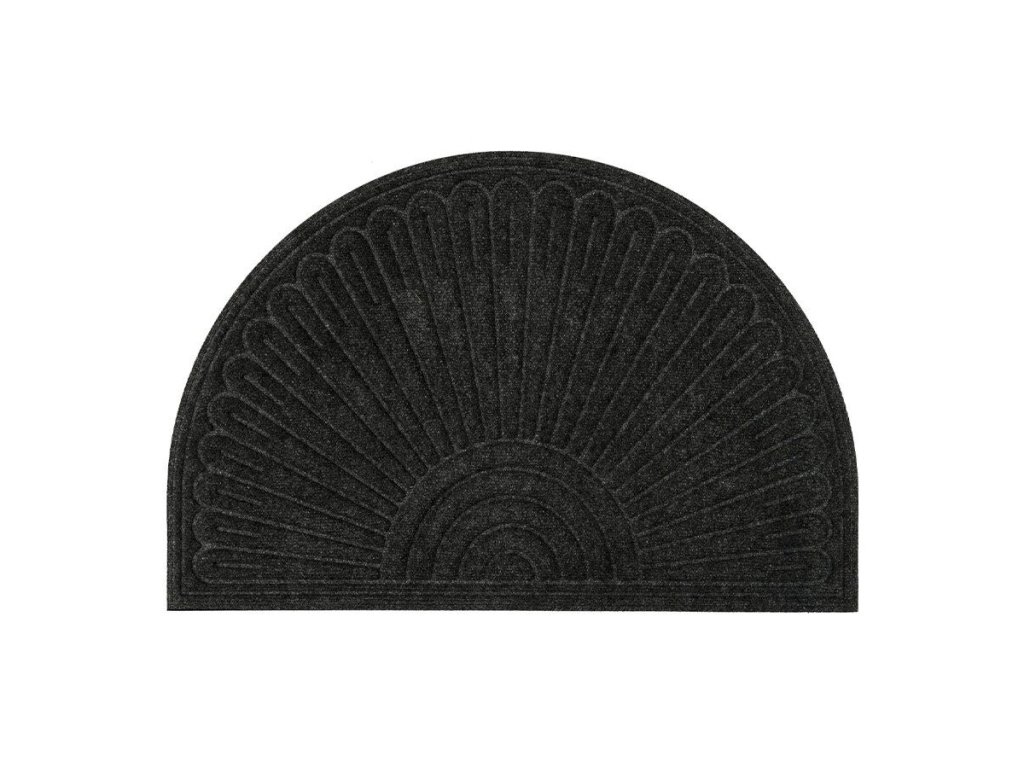 Antracitová textilní gumová čistící půlkruhová vstupní rohož FLOMA Contours - 60 x 90 x 1,1 cm