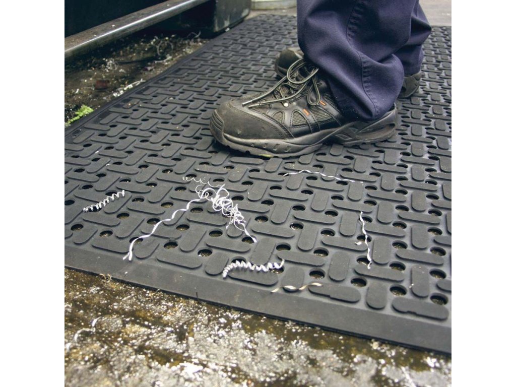 Rohož vyrobená ze 100 % nitrilové gumy. Otevřená struktura rohože zajišťuje volný odtok tekutin a povrch takto zůstává suchý.