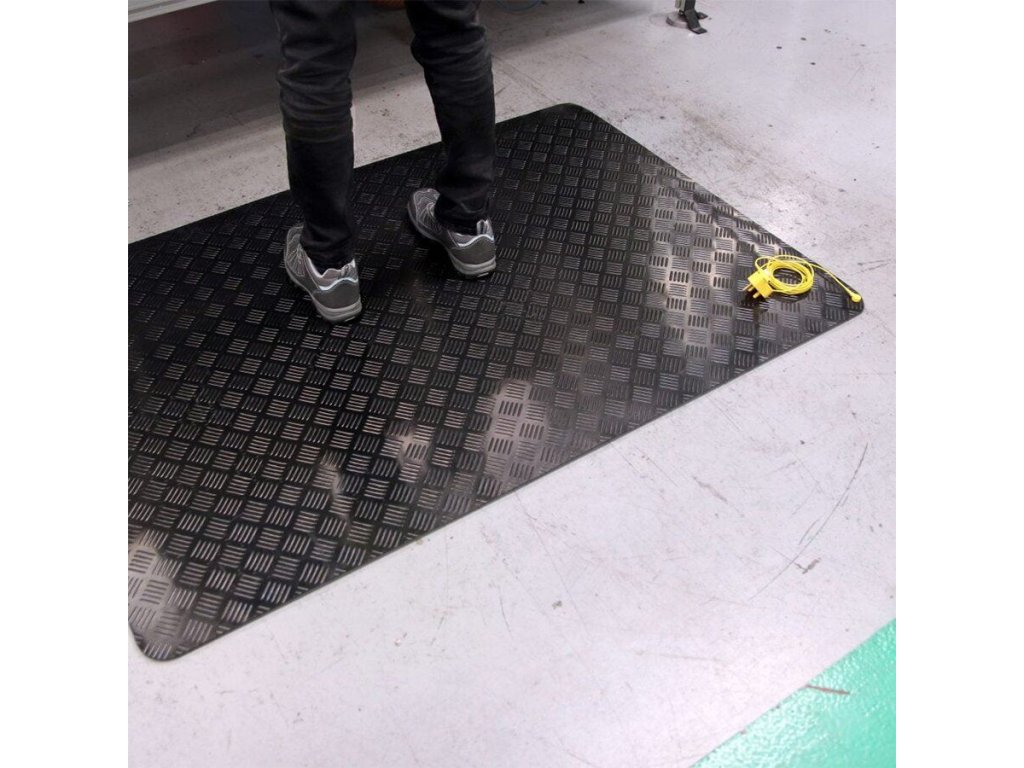 Podložka obsahuje vodivou vrstvu, která neutralizuje statický náboj a chrání tak komponenty před poškozením. Horní povrch poskytuje odolnost vůči mnoha průmyslovým chemikáliím. Komfortní diamantový povrch podporuje jemné pohyby, které dále snižují únavu.