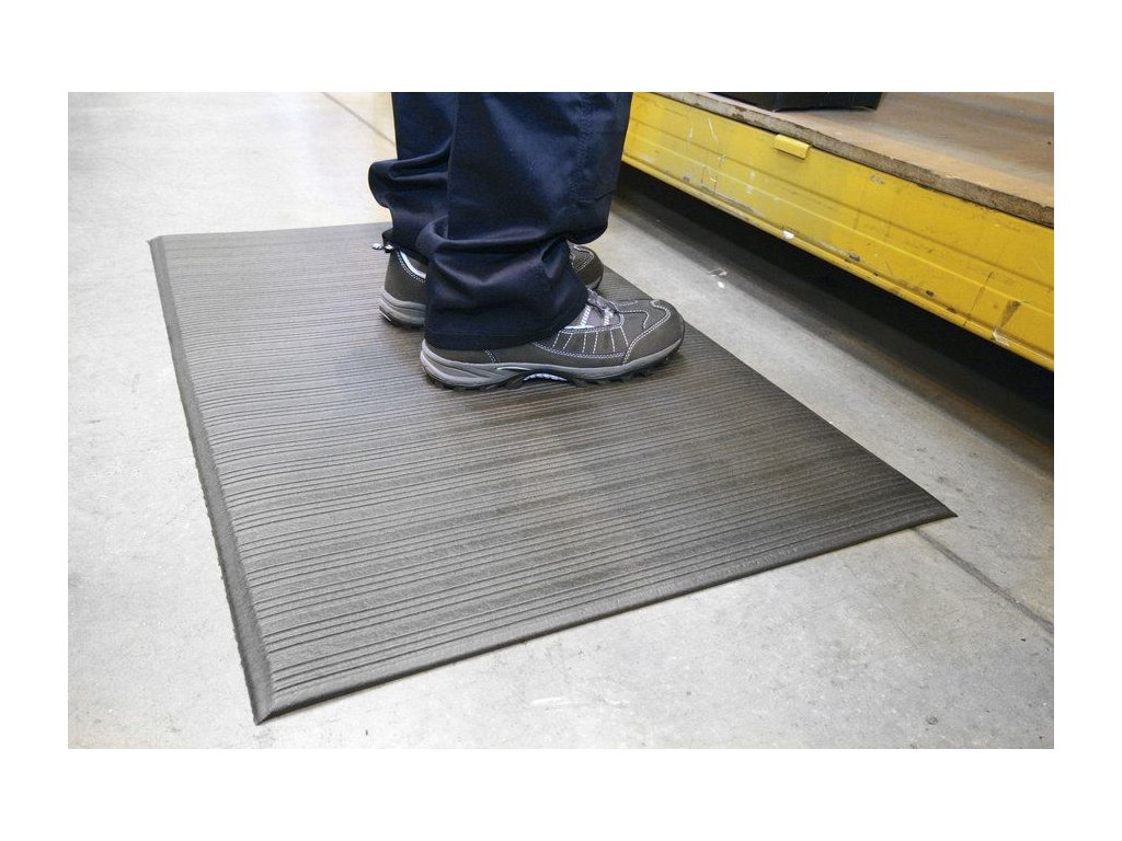 PVC průmyslová protiúnavová rohož s vyvýšeným rýhovaným povrchem eliminujícím riziko uklouznutí.