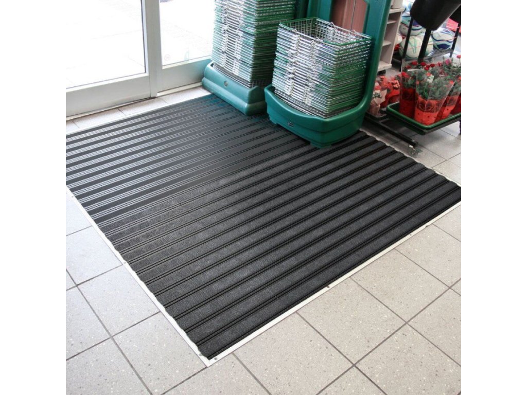 Díky této zátěžové děrované rohoži Premier Ribbedsi můžete sestavit vstupní rohož pro místa, která jsou vystavena vysoké zátěži. Tato modelová řada rohože Premier Ribbed je složena z gumových drážek, které odstraňují nečistoty a plastová děrovaná část zajišťuje odvod přebytečné vody. Tento model zátěžové rohože je unikátní svou požární odolnosti (Cfl-S2) oproti ostatním rohoží tohoto typu.