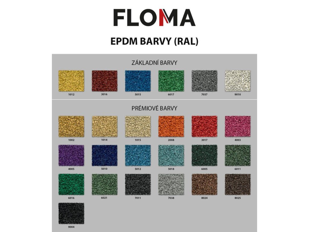 - materiál: pryž s příměsí 10% EPDM barevného granulátu (bílá - WHITE - RAL 9010)