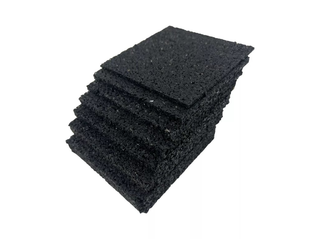 Univerzální podložky z pryžového granulátu lze použít i jako antivibrační podložky pro tlumení vibrací nejrůznějších menších strojů, například vypodložení noh kompresorů, lisů, praček, čerpadel apod. U větších strojů nebo tam, kde je žádoučí mít podloženou celou plochu stroje doporučujeme využit antivibrační rohože, které jsou pro tyto účely vhodnější.