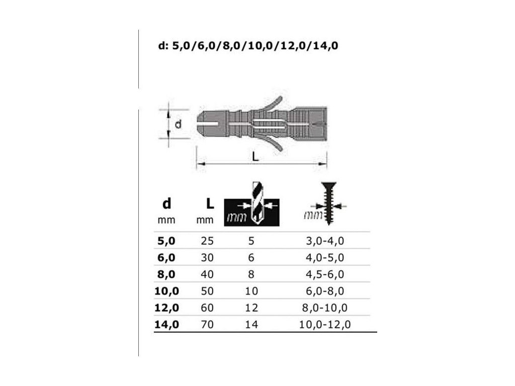 Hmoždinka nylonová stavební KNXs trojnásobným rozepřením