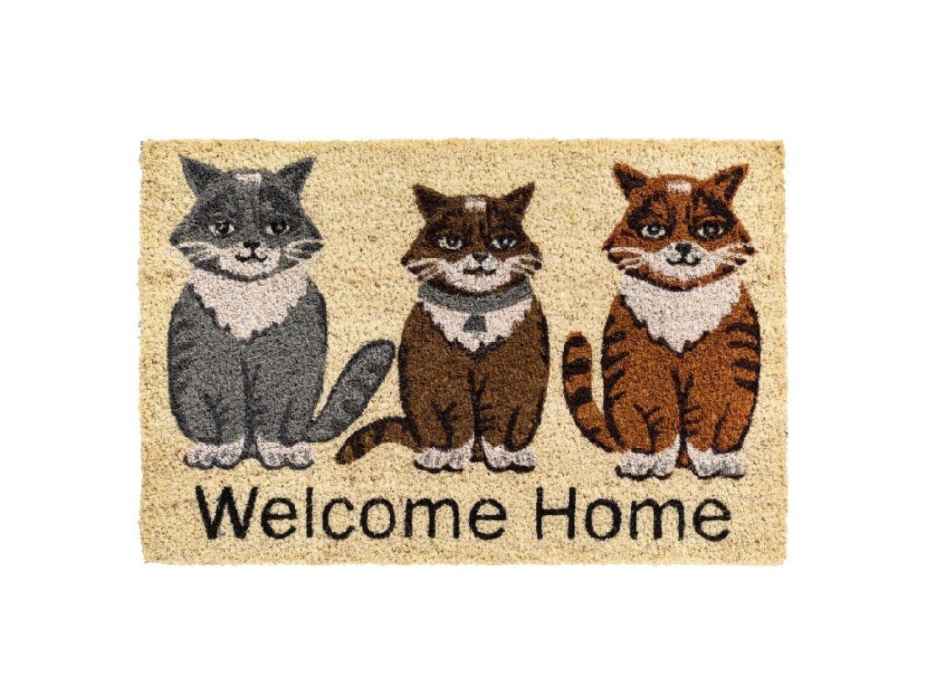 Kokosová vnitřní čistící vstupní rohož FLOMA Ruco Welcome home Cats - 40 x 60 x 1,5 cm