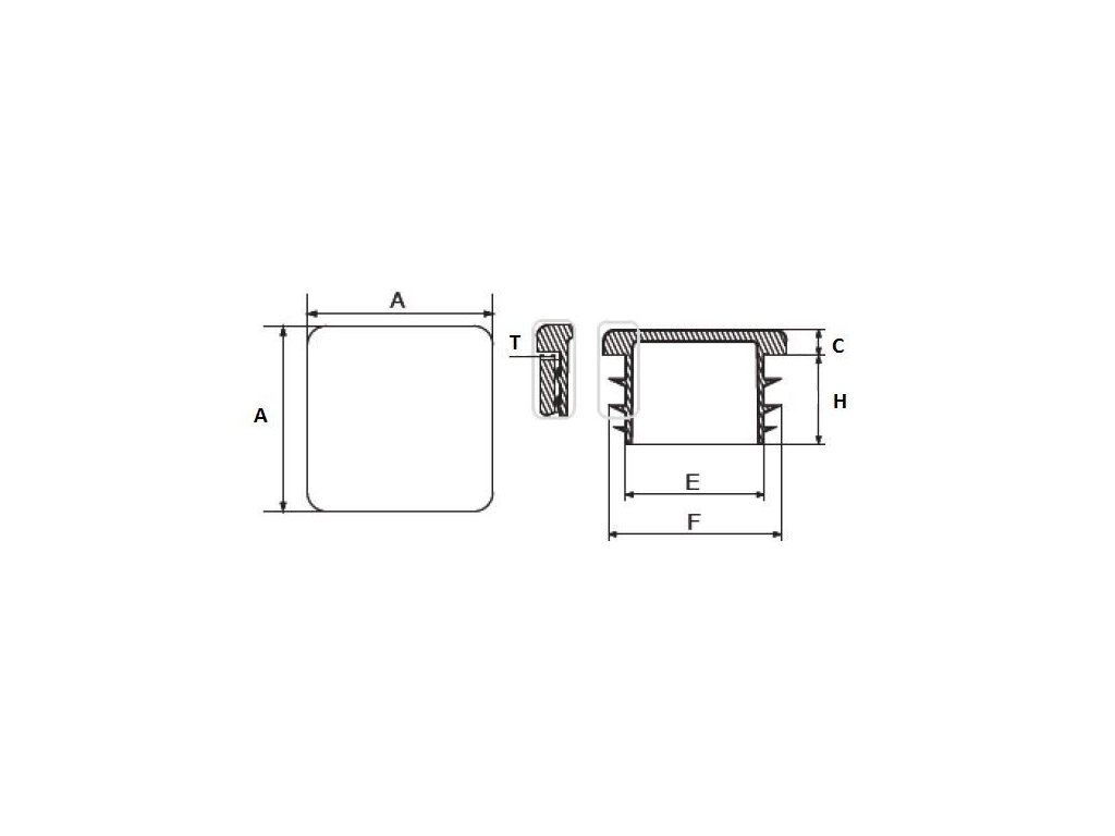 Plastová zátka jeklu čtvercová - 25x25x1-2mm černá