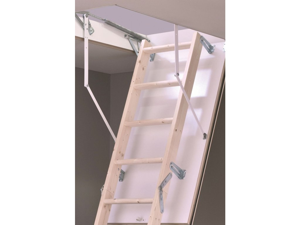 Půdní schody Mini MC Step rakouského výrobce Minka jsou vhodné do malých prostor, tam kde je pro rozložení žebříku málo místa. Slouží k výlezu do půdních prostor v rodinných domech, chatách, skaldech a provozovnách. Tento model půdních schodů má celodřevěnou konstrukci, a skládá se, ze třech hlavních dílů. Dřevěného rámu schodů o výšce 135mm, zatepleného sendvičového víka a vlastního žebříku. Zateplené víko s falcem a celoobvodovým těsněním je oboustranně opláštěn bílou HDF deskou. Na víku je namontován složený čtyřdílný žebřík. Půdní schody jsou opatřeny párem ocelových pružin, které brzdí pád při otevírání a napomáhají při zavírání. Kotví se pomocí vrutů, přes rám schodiště do nosné konstrukce stropu. Půdní schody se vyrábí ve 5 půdorysných rozměrech, pro světlou výšku místnosti max. 2800mm. Pro menší světlé výšky místností, se žebřík zkrátí přímo na stavbě. Objednávaný rozměr schodů je rozměrem hrubého stavebního otvoru, rám schodů je ve skutečnosti o 10mm menší pro snadnější instalaci. Maximální přípustná zátěž je 150kg. Půdní schody jsou zateplené 27mm izolace, U víka =1,1W/m2K. Půdní schody doporučujeme před trvalým používáním opatřit dalším ochranným nátěrem, prodloužíte tak jejich životnost. Na začištění stropního otvoru lze použít krycí lišty Minka Fix 18mm. Schody odpovídají normě EN14975.Doplňkové parametry