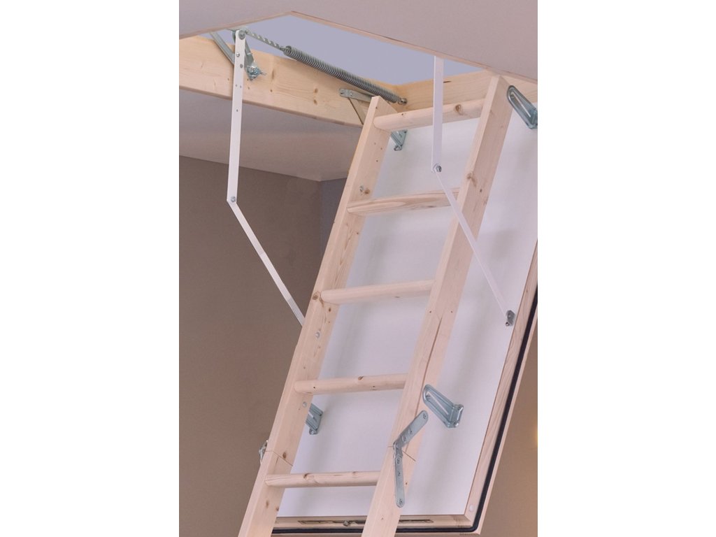 Zateplené půdní schody Alpine Polar mají ze všech schodů Minka nejlepší izolační vlastnosti, U víka =0,64W/m2K. Půdní schody jsou celodřevěné složené z dřevěného rámu o výšce 135mm, zatepleného víka a samotného žebříku. Zateplené sendvičové víko s falcem a těsněním obsahuje izolaci a je oboustranně opatřeno bílou HDF deskou. To zaručuje vzduchotěsnost třídy 4. Na víku je namontován složený třídílný žebřík s gumovými patkami a madlo. Půdní schody jsou opatřeny párem ocelových pružin, které brzdí pád při otevírání a napomáhají při zavírání. Půdní schody se vyrábí ve třech půdorysných rozměrech, a pro světlou výšku místnosti max. 2800mm. Pro menší světlé výšky místností, se žebřík zkrátí přímo na místě. Objednávaný rozměr schodů je rozměrem hrubého stavebního otvoru, rám schodů je ve skutečnosti o 10mm menší pro snadnější instalaci. Maximální zátěž je 150kg. Půdní schody jsou zateplené 54mm izolace, U víka =0,64W/m2K. Na začištění stropního otvoru lze použít krycí lišty Minka Fix 27mm. Schody splňují normu EN14975 a EN 1026 na vzduchotěsnost.Doplňkové parametry