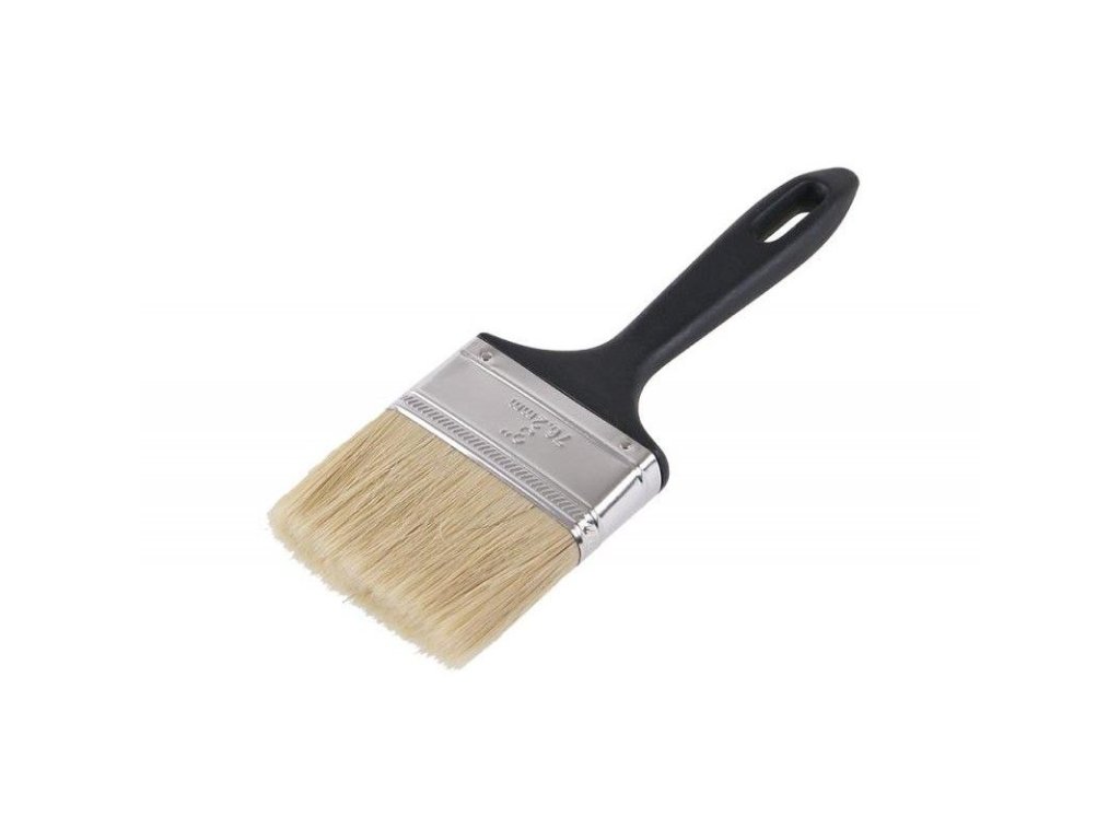 Štětec plochý 3" 64x17x52mm s černým plastovým držadlem, světlá štětina - tato štětina se získává z čínských prasat v barevném provedení světlá, černá a šedá.